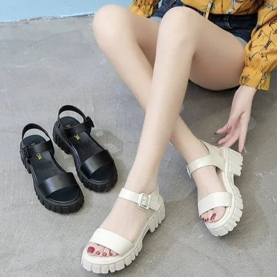 Women's Peep Toe Ankle-strap Buckle Platform Sandals